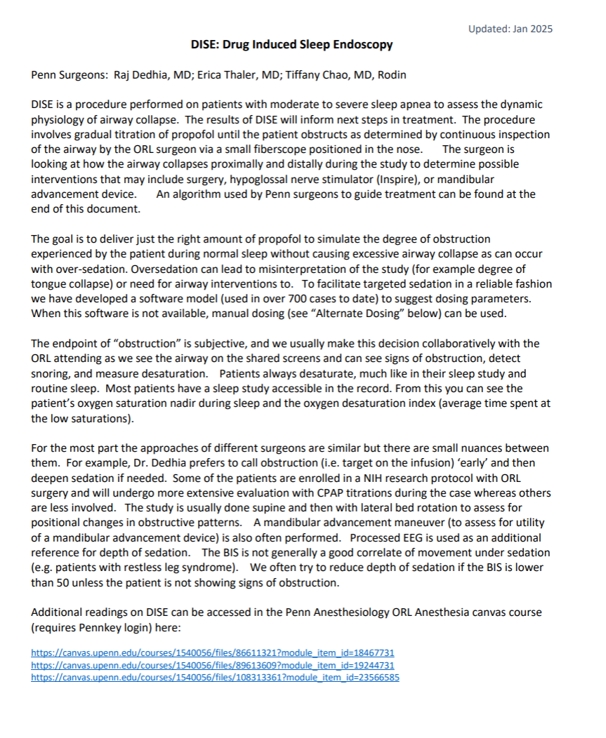 Reference: Drug Induced Sleep Endoscopy Protocol Penn